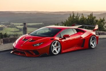 Lamborghini Huracán vermelha rebaixada com rodas Rotiform