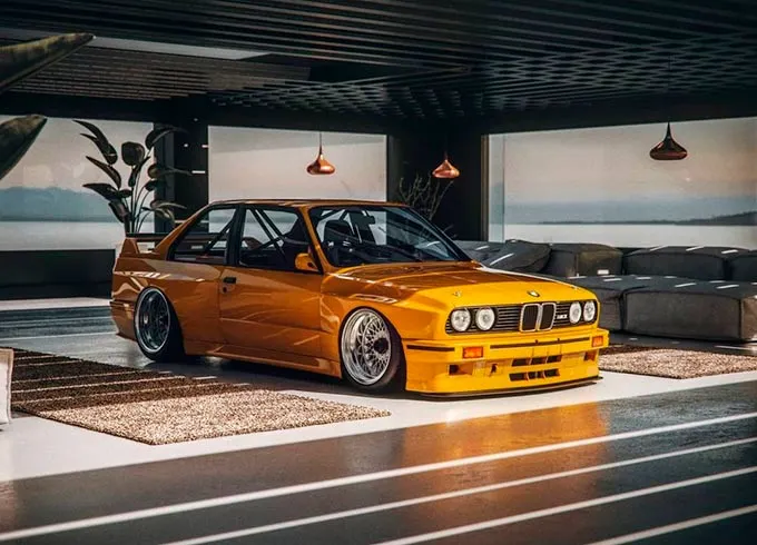 Confira as fotos desta linda BMW E30 M3 rebaixada amarela, bagged/slammed BMW.