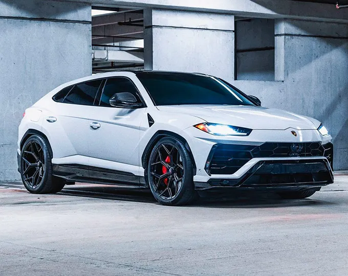 Confira as fotos desta linda Lamborghini Urus rebaixada, al piso branca, equipada com rodas Novitec.