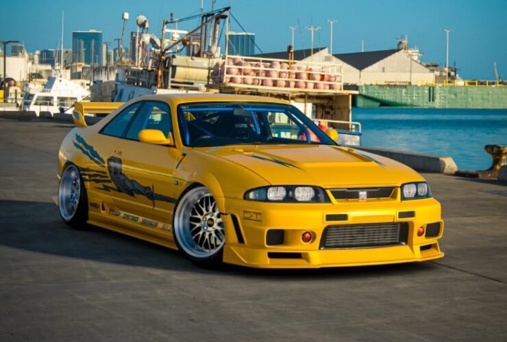 Nissan Skyline R33 rebaixada amarela